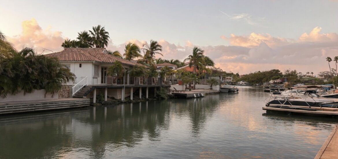 The best part of the home is the large porch overlooking the water - an easy place for slow mornings, sunset drinks, or simply watching the boats go by. When it’s time to cool off, the shared pool is just steps away.